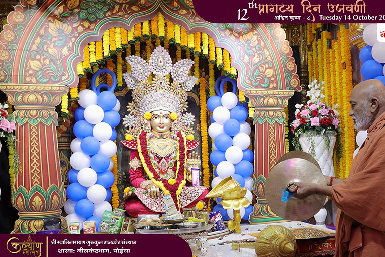 आज का 14 Oct 2025 दिन यांनि नीलकंठ प्रभु का प्राकट्य दिन … आज के दिन नीलकंठ प्रभुके अर्चा स्वरूप का प्रस्थापन मंदिर के गर्भगृहमें आचार्य महाराज श्री राकेशप्रसादजी महाराज के द्वारा किया गया। पूज्य गुरुमहाराज, पूज्य महंत स्वामी, पूज्य धर्मवल्लभ स्वामी आदि वरिष्ठ संतो द्वारा नीलकंठ प्रभु का प्रागट्य दिन मनाया गया ।